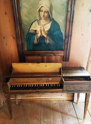 Weiters befindet sich im Musikzimmer ein mit Schablonenmalerei verziertes Clavichord, ein Vorläufer zum Hammerklavier aus der Zeit um 1800. Ähnliche Tasteninstrumente wurden zum Beispiel von Wolfgang Amadeus Mozart für Kompositionen verwendet. Im bürgerlichen Milieu waren Clavichord und Hammerklavier sehr beliebt und dienten zur Aufführung kleiner Konzerte im Familien- und Freundeskreis.