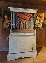Im Musikzimmer befindet sich das musikalische Herz des Hauses: eine bemerkenwertes Orgelpositiv aus dem 18.Jahrhundert