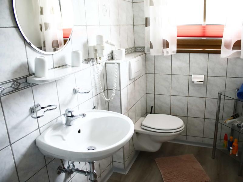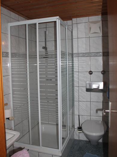 *eine Dusche mit WC (Fön und Kosmetikspiegel)