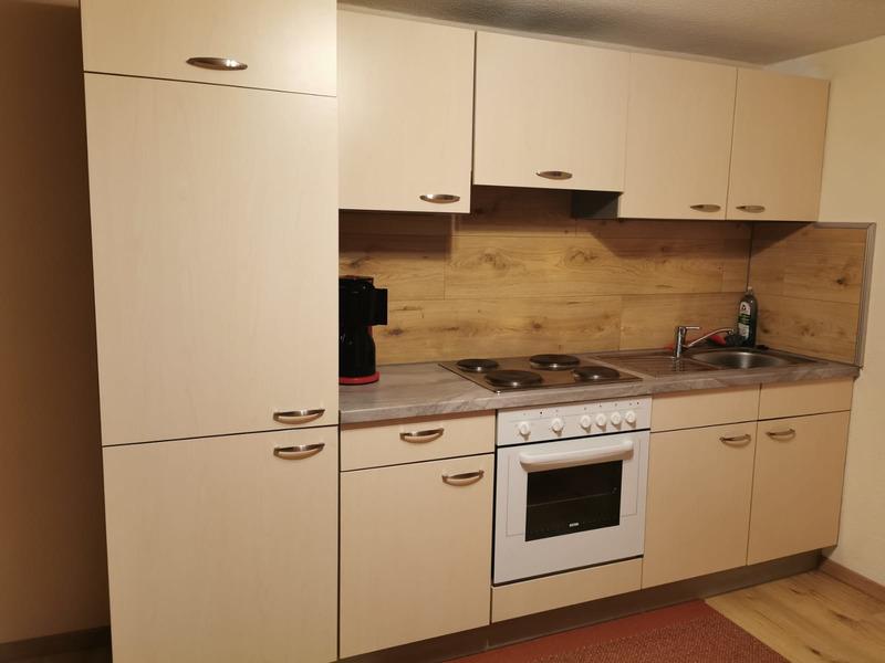 *eine vollausgestattete Küche (mit Mikrowelle)